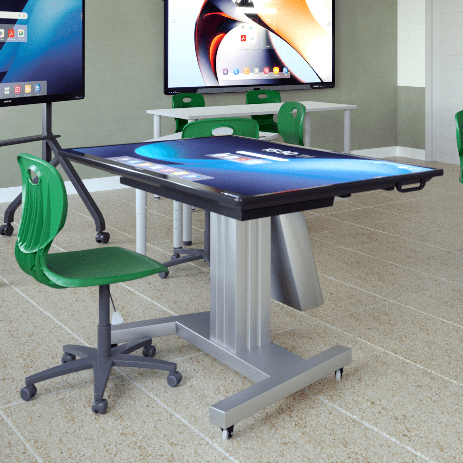 A must-have accessory for an efficient device utilisation, this mobile stand features electric height and tilt adjustment, ensuring optimal viewing angles, and can accomodate displays up to an impressive 90 inches for a dynamic visual experience. Equipped with projecting casters, a brake and an anti-rollover base (110x71cm), they guarantee both stability and ease of mobility.